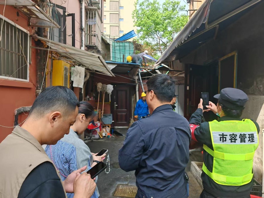 然而,又一个难题摆在面前——年代久远、图纸缺失,导致建筑的原貌“模糊不清”,为整改带来困难。城管队员先后多次走访物业、查阅城建原始资料,多方溯源求证。最终,他们发现了一张上世纪70年代的泛黄家庭照片,照片里精准地还原了历史场景,为历史建筑的整改提供了关键依据。根据原始场景,整改既符合历史建筑保护要求,又贴合居民实际居住需求。
